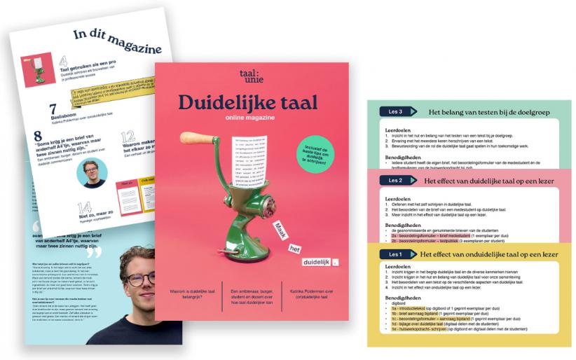 Je kunt het magazine gebruiken als onderdeel van het lesmateriaal, maar studenten kunnen het ook prima zelfstandig lezen. De artikelen zijn ook te gebruiken als bronmateriaal voor je eigen lessen over (het belang van) duidelijke taal.
